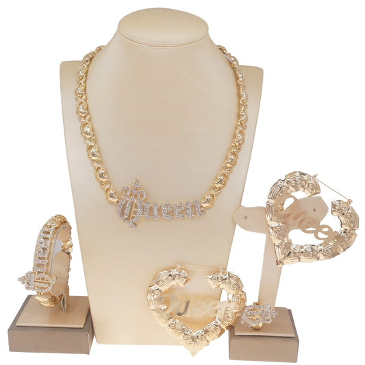 Four-Piece Letter Jewelry Set Gold