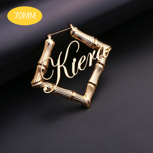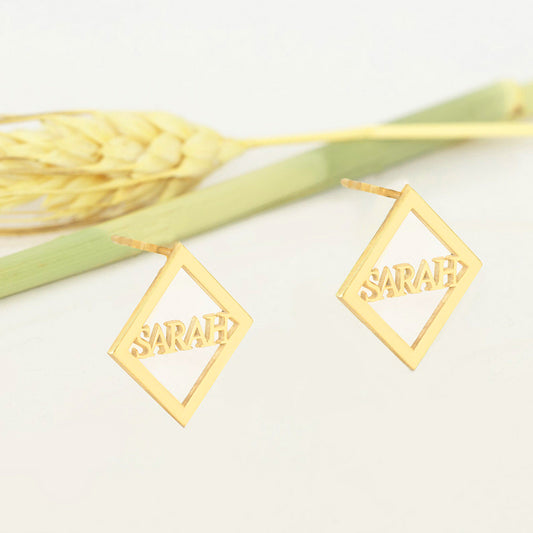 Gold Plated Letter Stud Square Name Earrings 18K