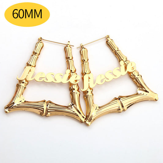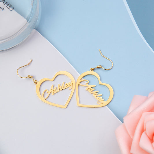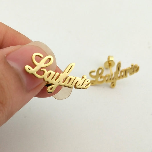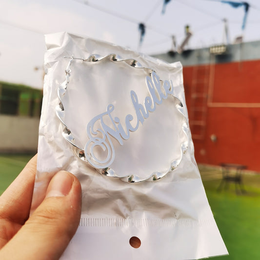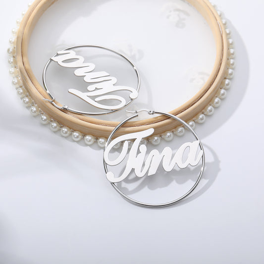 Stainless Steel Gold Plated Big Circle Custom Name Earrings